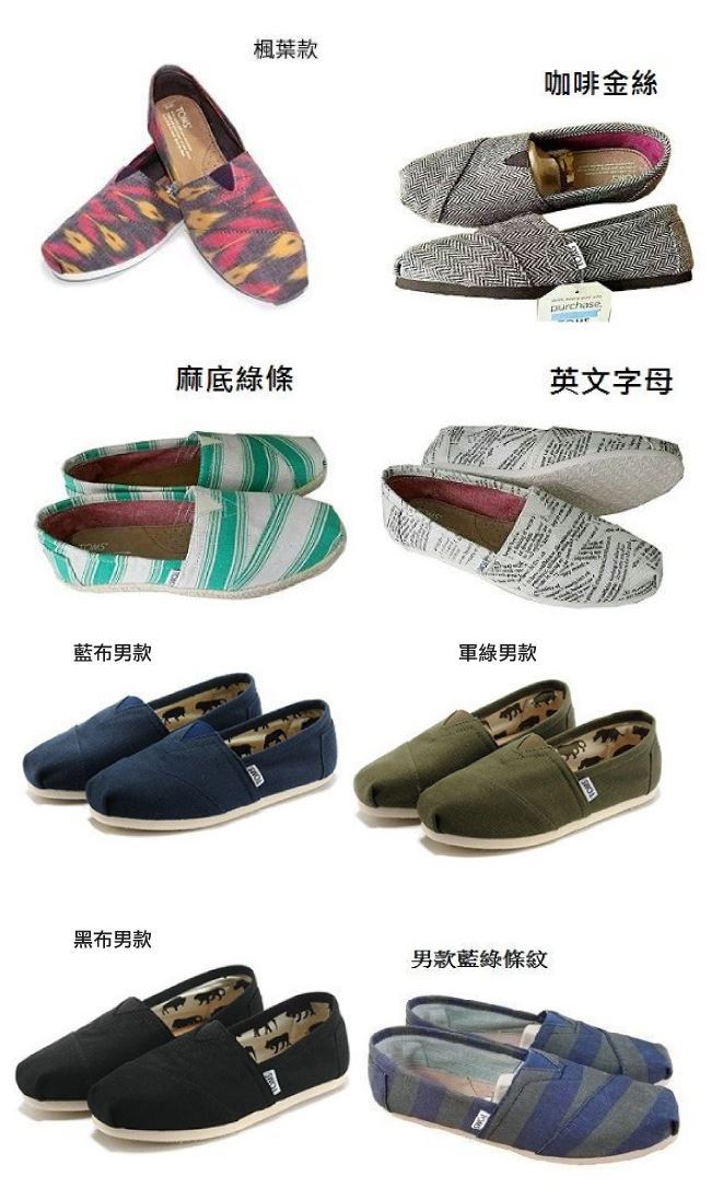 熱銷上萬雙!!TOMS經典懶人鞋,買一送一,僅此一檔!現折最划算,小編已搶先入手,,買到賺到!!多款任選,總有超級適合你的style!!上班,上學,逛街,度假,,出遊,絕佳好走舒適透氣鞋款!! 女鞋:W5.5/W6/W6.5/W7/W7.5/W8/W8.5/W9 男鞋:M7/M8/M8.5/M9/M9.5/M10/M10.5 童鞋:T7/T8/T9/T10/T11
