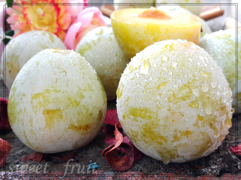 恐龍蛋可不是李子喔! 恐龍蛋即所謂的杏桃,是杏與李的混種水果,台灣俗稱杏李、恐龍蛋、駝鳥蛋等,經過加州農場的研發,品種高達四十幾種,口味都略有不同,但通常果肉多汁、風味濃郁,皮香微酸,恰到好處,滋味非常迷人。